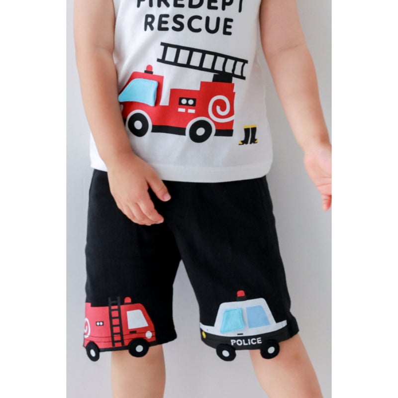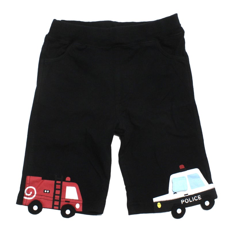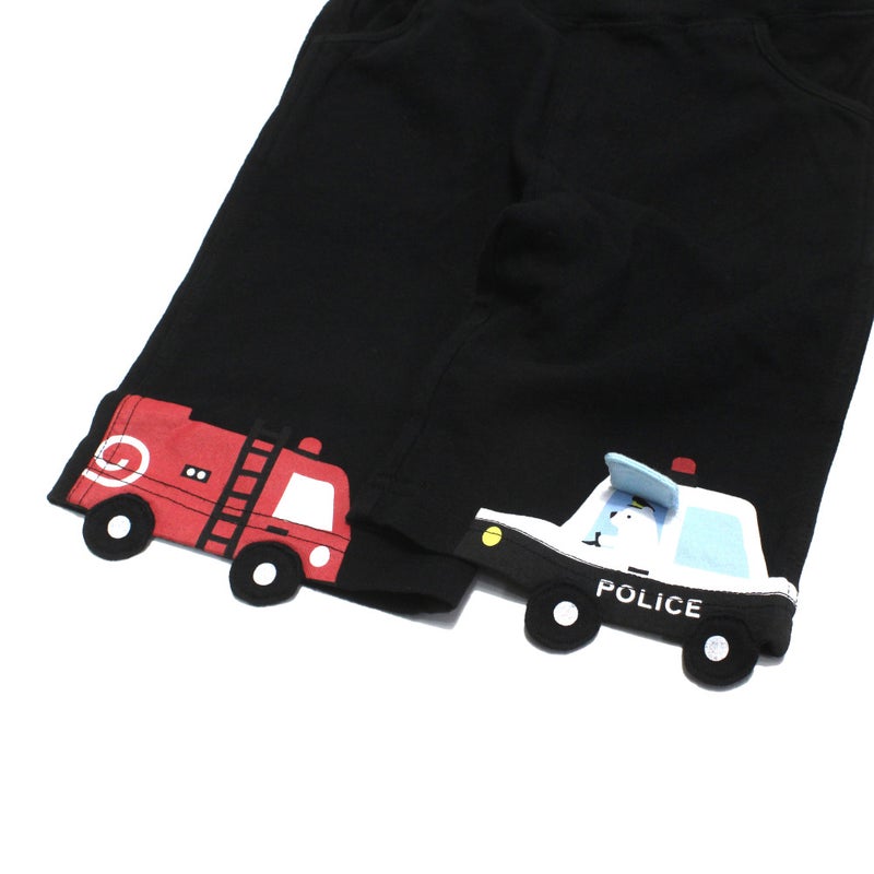 両裾にパトカーと消防車がついたハーフパンツ。