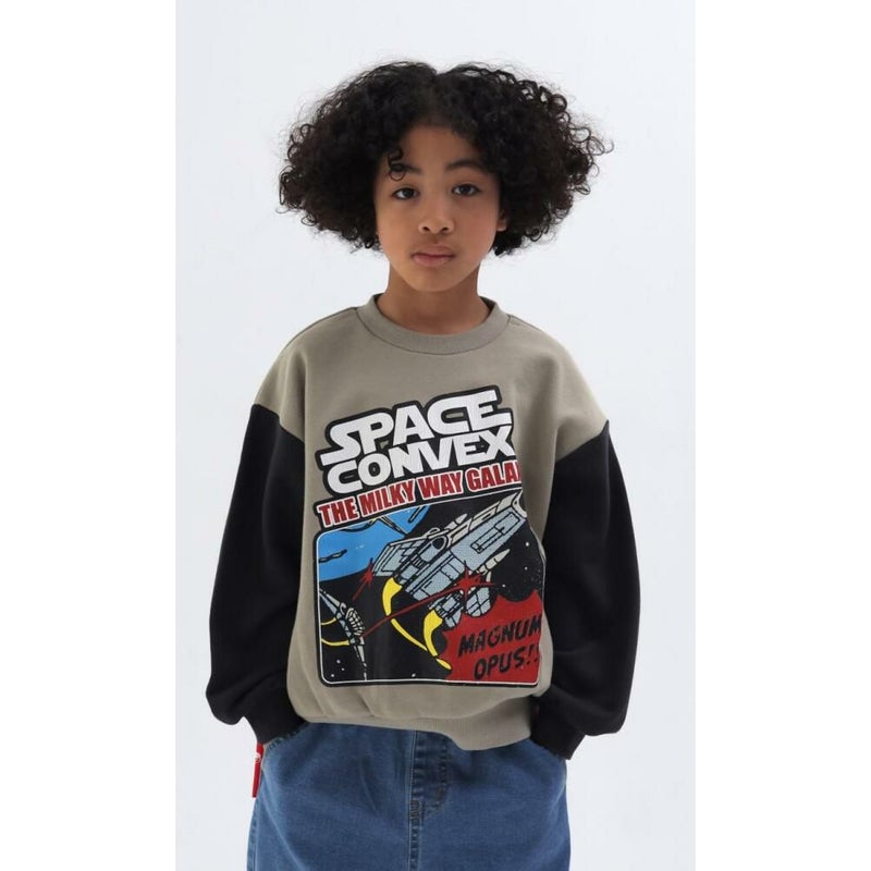 宇宙モチーフのグラフィックプリントが印象的。