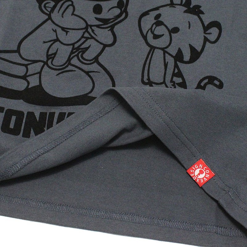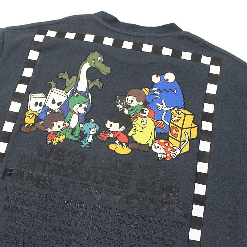 バックプリントにミュータンファミリーをプリントしたデザイン。