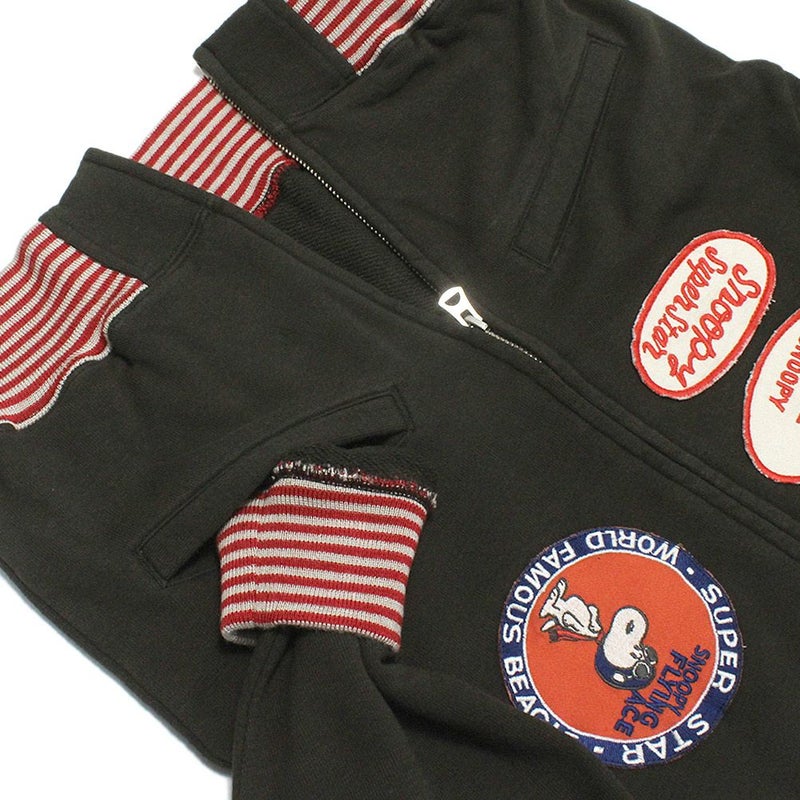 前と右肩にスヌーピーのワッペン付き。