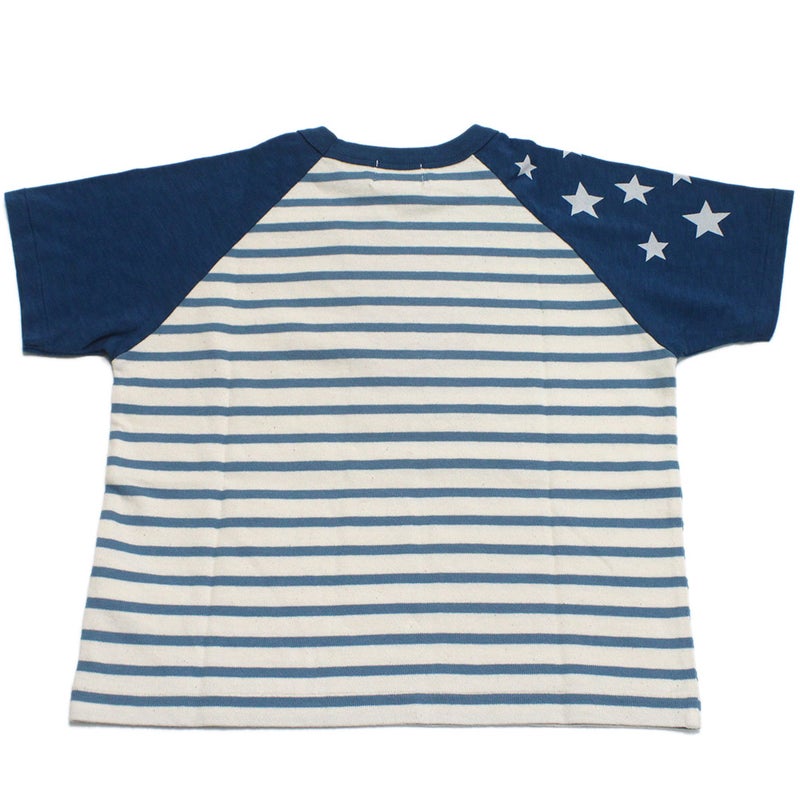 袖を切り替えたボーダーのラグランスリーブTシャツ。