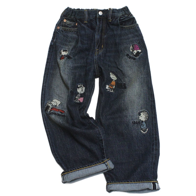 海外の壁画アートのようなスタイリッシュさとストリートを感じさせるPEANUTSメンバーを刺繍したデニムパンツ。