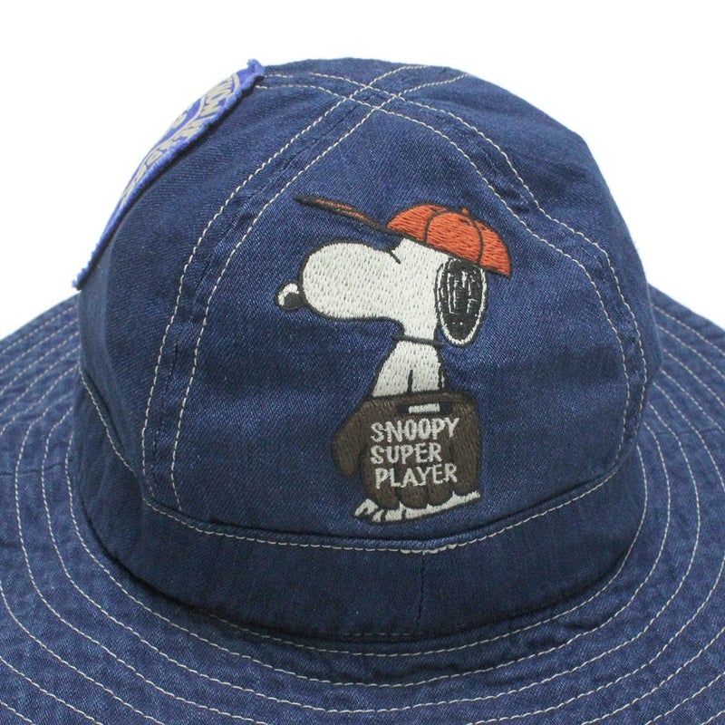 手振りミシンの雰囲気のスヌーピー刺繍と、ワッペンが全体に入ったコラボハット。