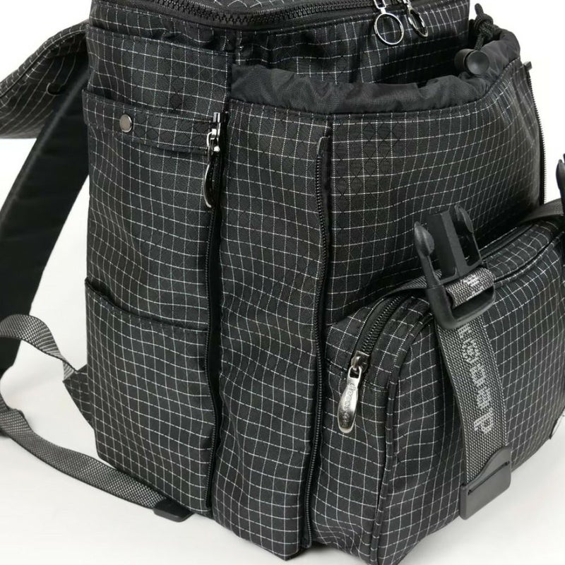 サイドのマチはジッパーで開閉可能なので、用途に応じて収納力を調整できます。