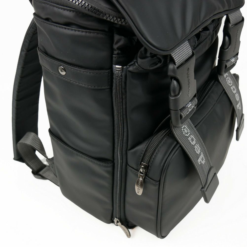 サイドのファスナーでサブコンパートメントの容量を調整可能。