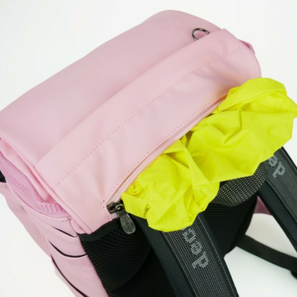 レインカバーをフラップ内に内蔵しているので通学途中や帰宅途中に急な雨にあってしまっても安心!