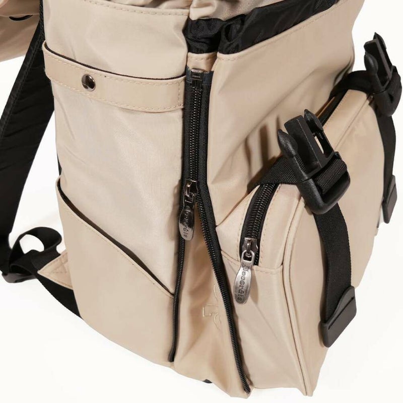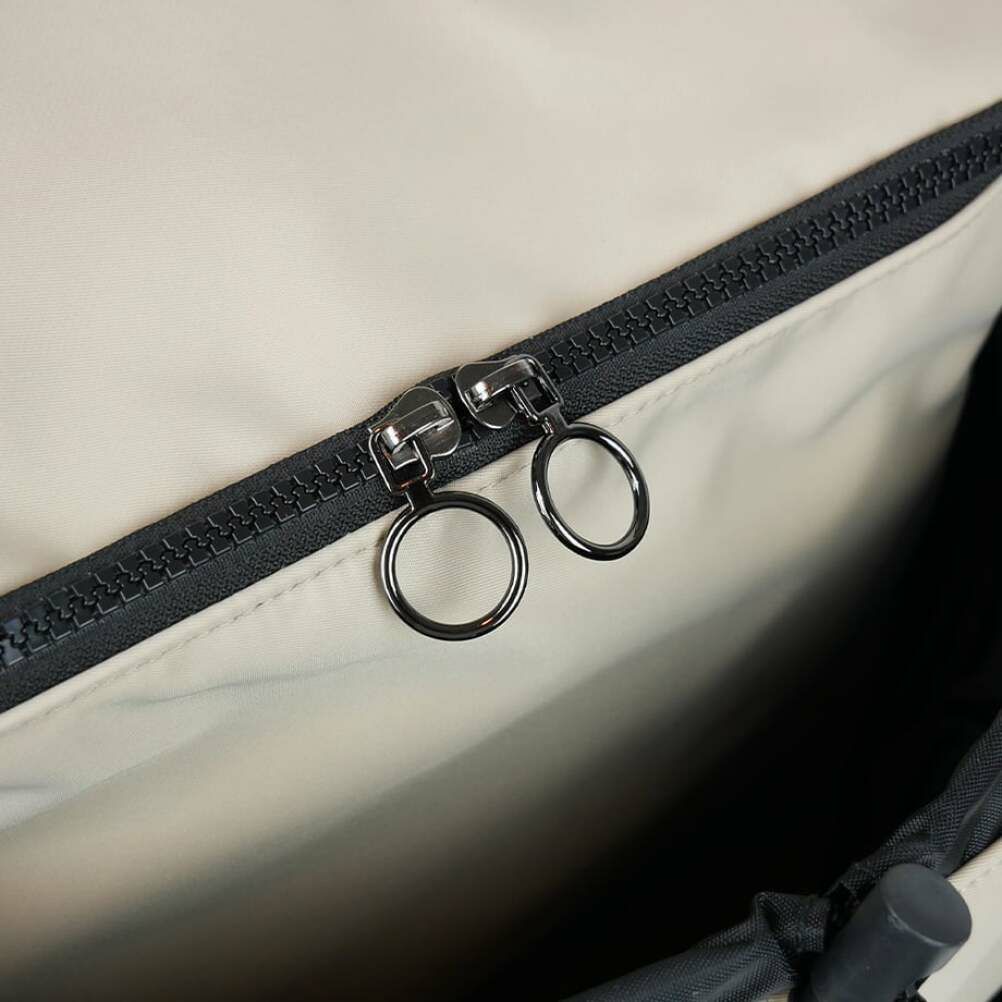 サイドのファスナーでサブコンパートメントの容量を調整可能。