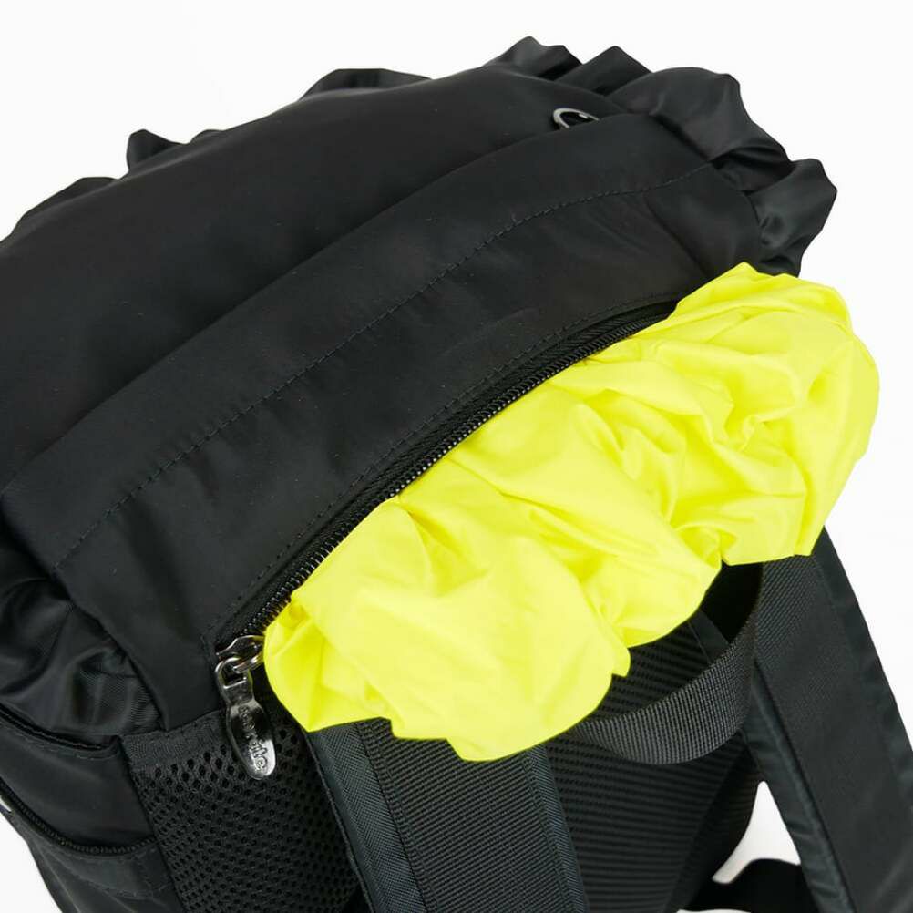 レインカバーをフラップ内に内蔵しているので通学途中や帰宅途中に急な雨にあってしまっても安心!