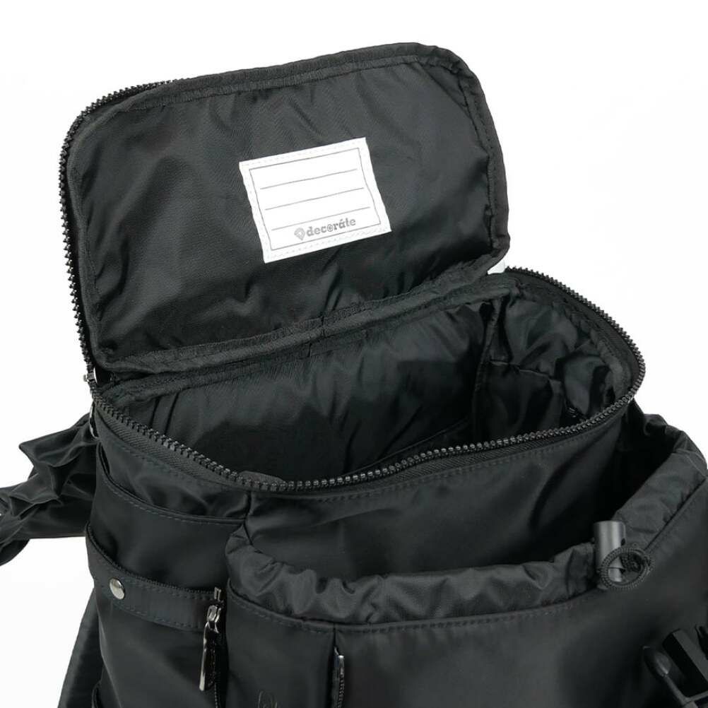 サイドのファスナーでサブコンパートメントの容量を調整可能。