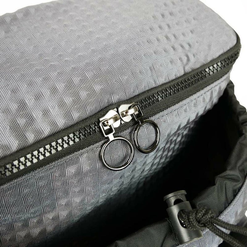 サイドのファスナーで、サブコンパートメントの容量を調整可能。