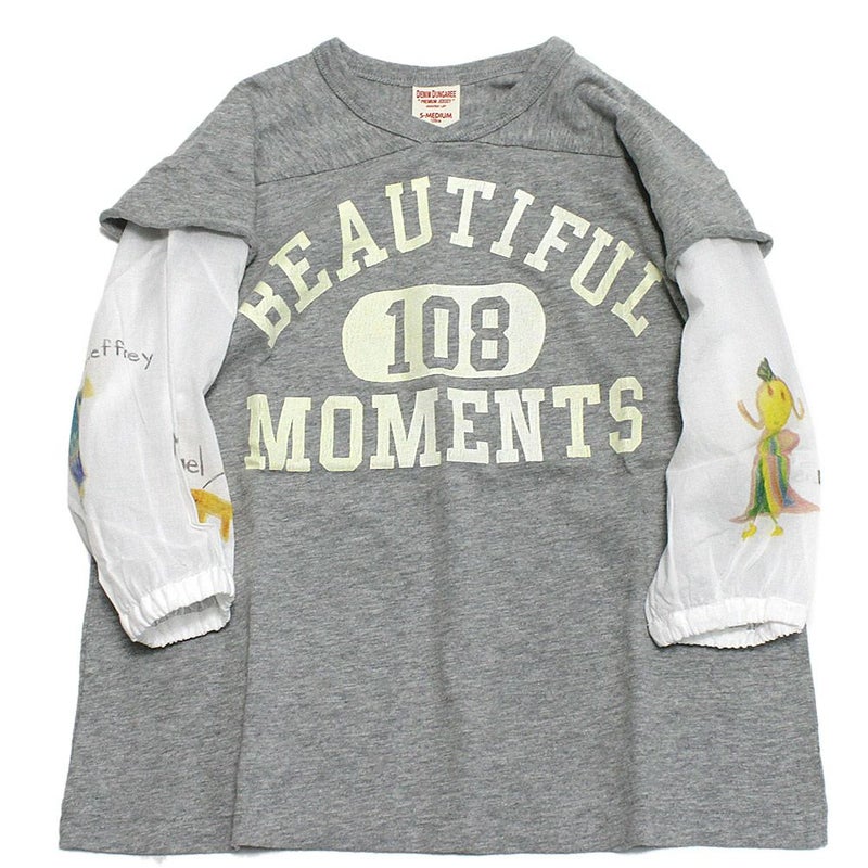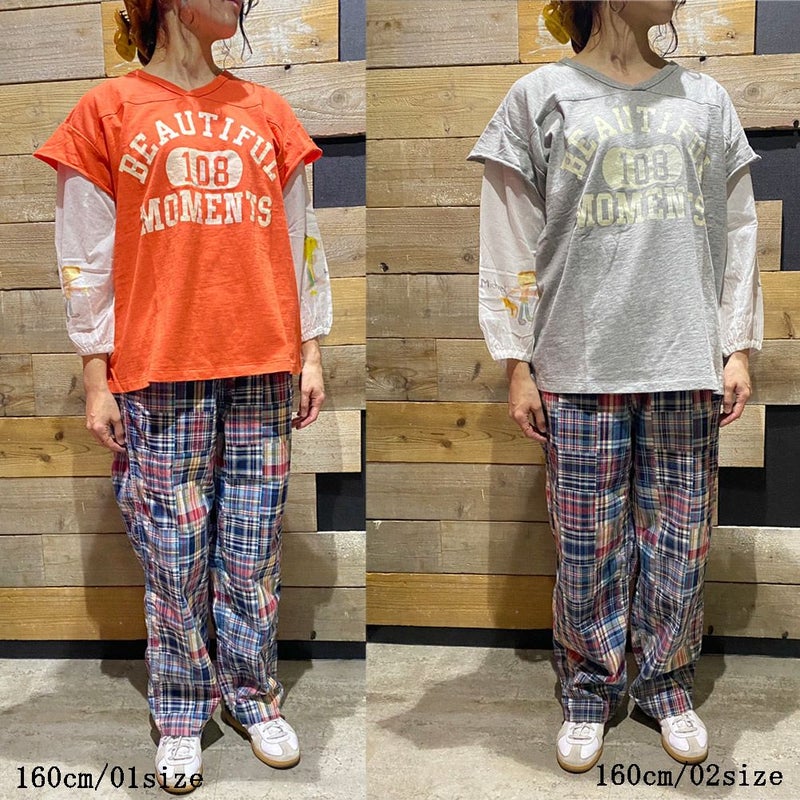 フットボールTシャツにシーチングブラウスの袖をドッキング。