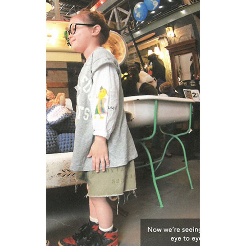 落書きプリントのパフスリーブがポイント。