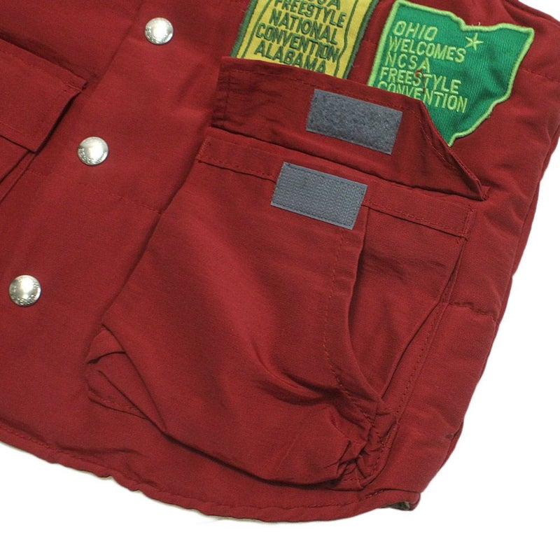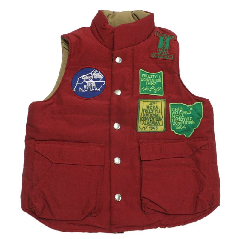 複数のワッペンをレイアウトした中綿入りベスト。