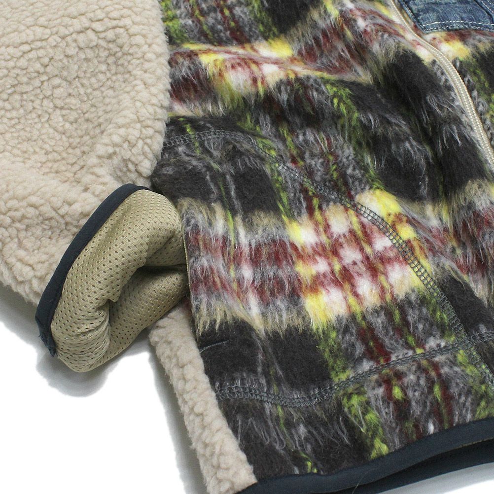 前に毛足の長いシャギーチェック、後はボアのパッチワークデザイン。