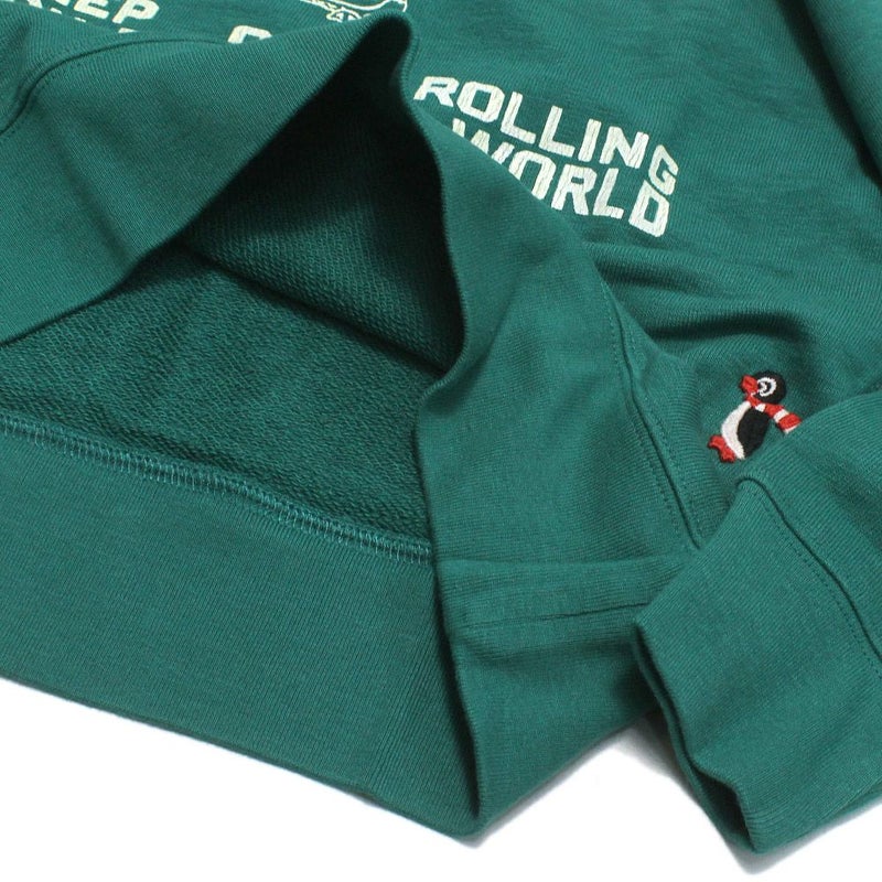 空気をたっぷり含んだ柔らかな生地に仕上がるトンプキン編み機を使用した裏毛トレーナー。