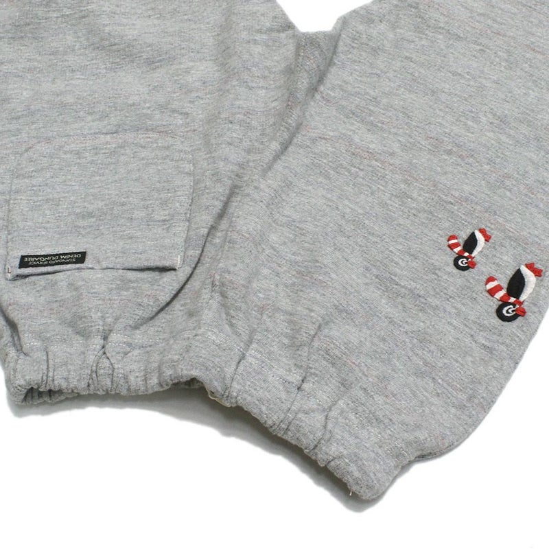 裏がボーダー起毛になったオリジナルの生地を使ったスウェットパンツ。