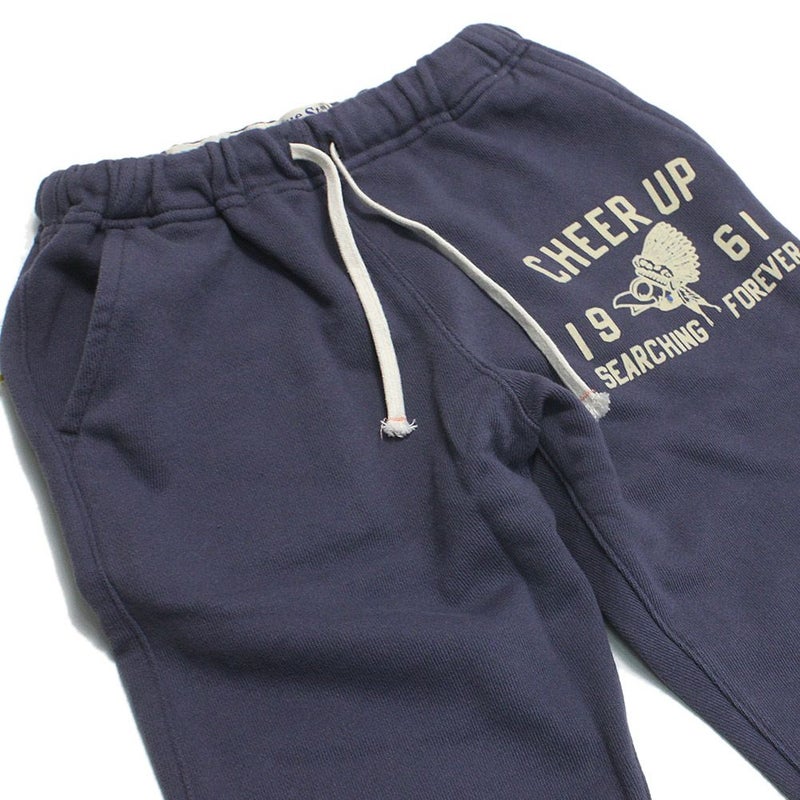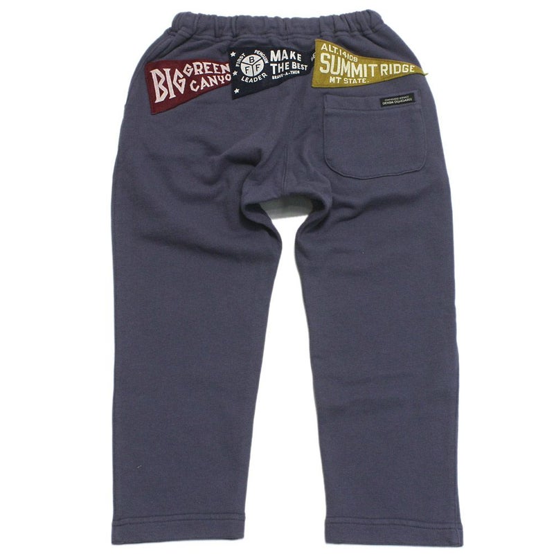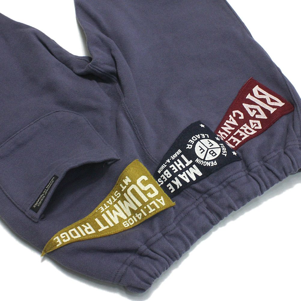 ヒップに取り付けたペナントが目を惹くスウェットパンツ。