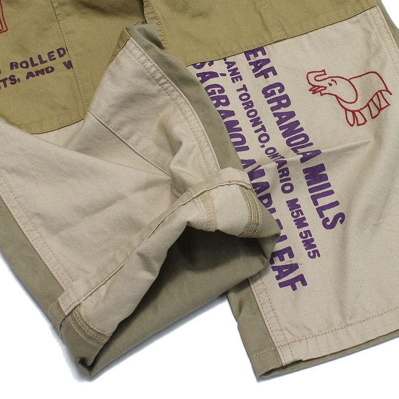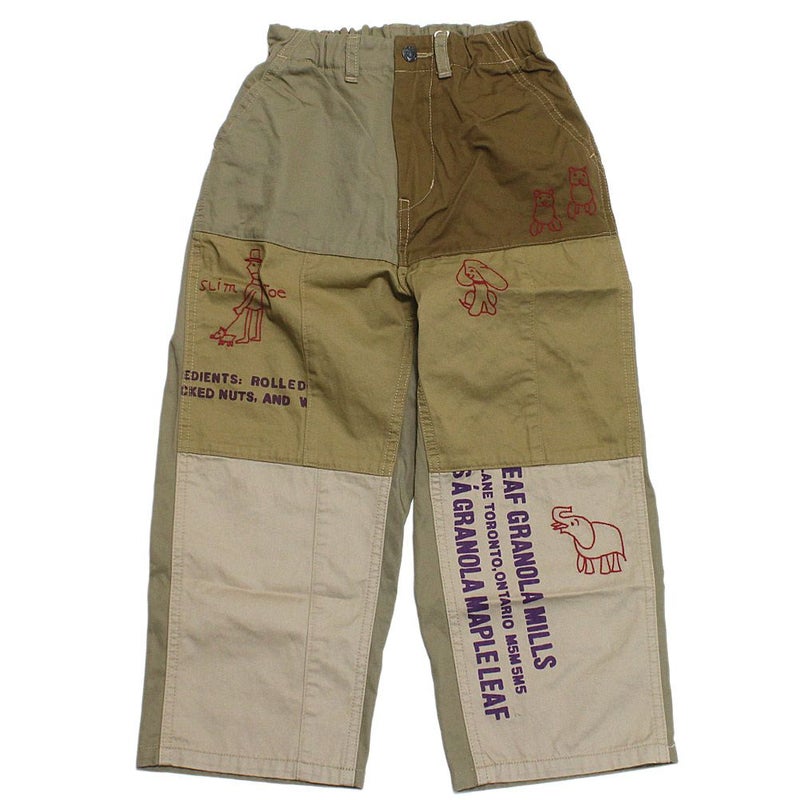 カラー違いのチノパンツをリメイクしてつなげた様なパンツ。