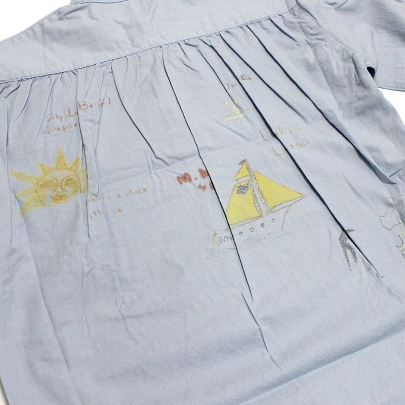 バックにはヨーク切替にギャザーデザインを施し、あたたかみを感じる落書きプリントを。