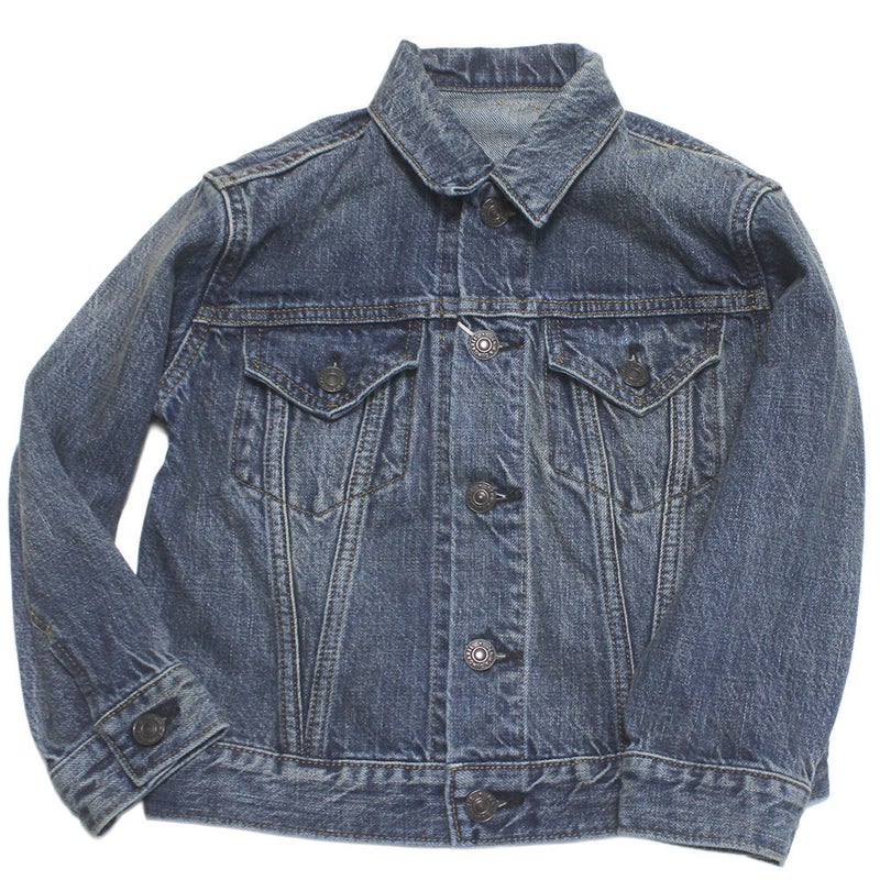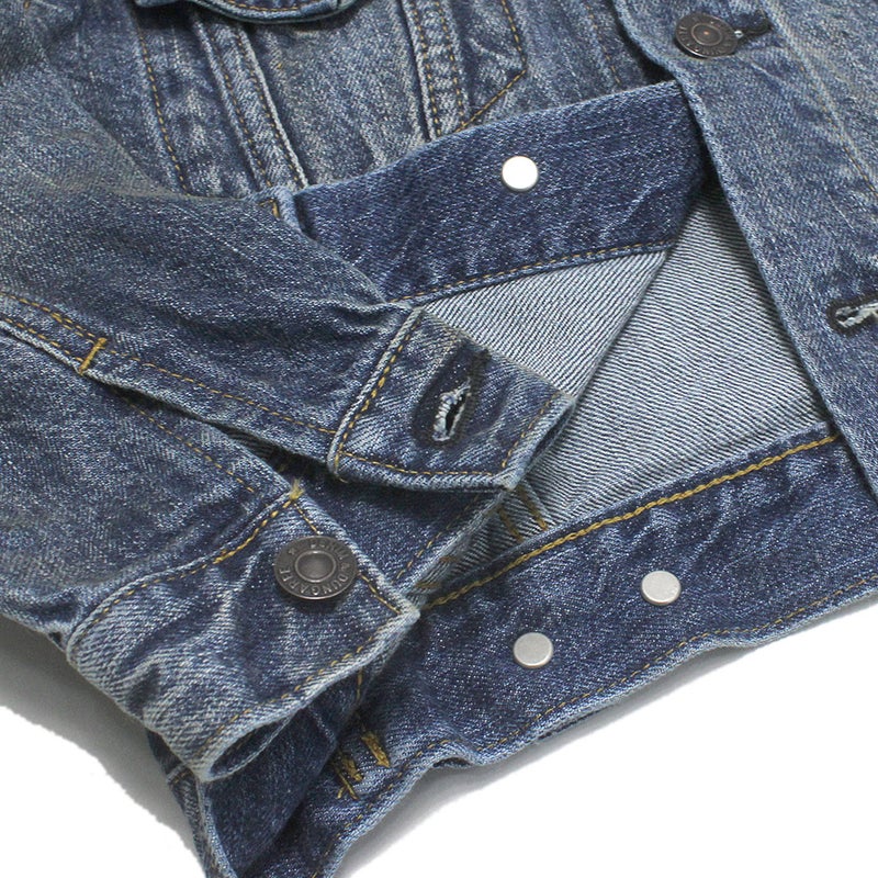 背面にロゴを大きく刺しゅうしたベーシックなデニムジャケット。