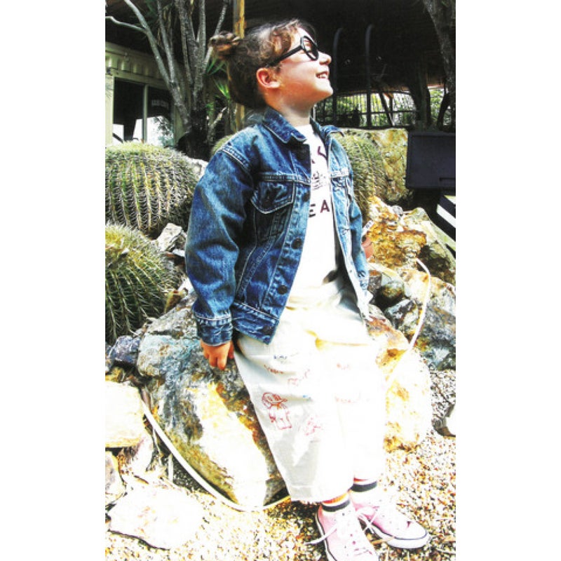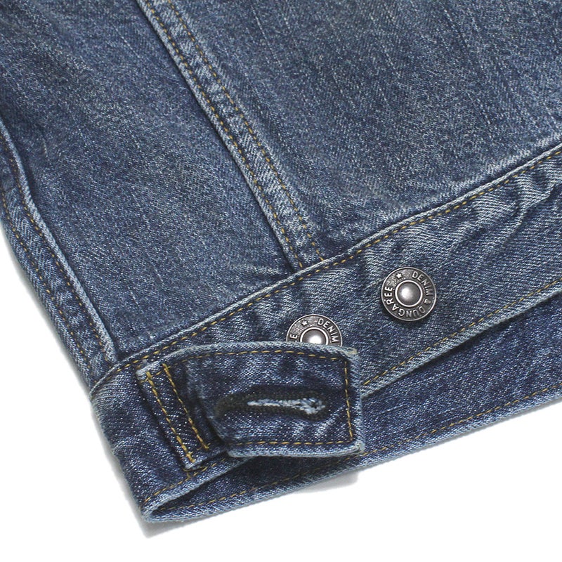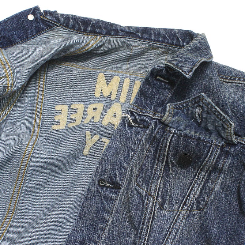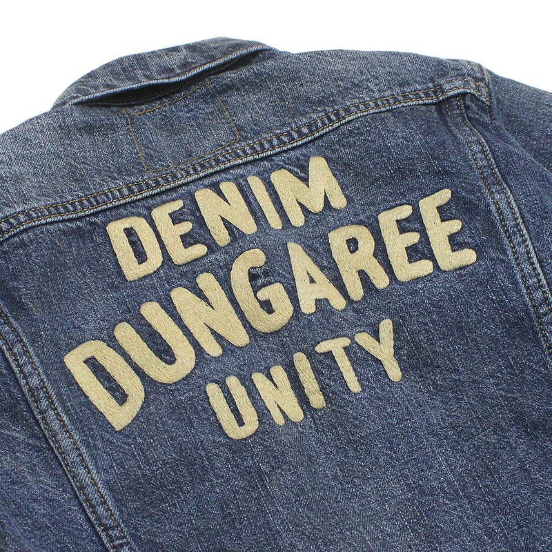 背面にロゴを大きく刺しゅうしたベーシックなデニムジャケット。