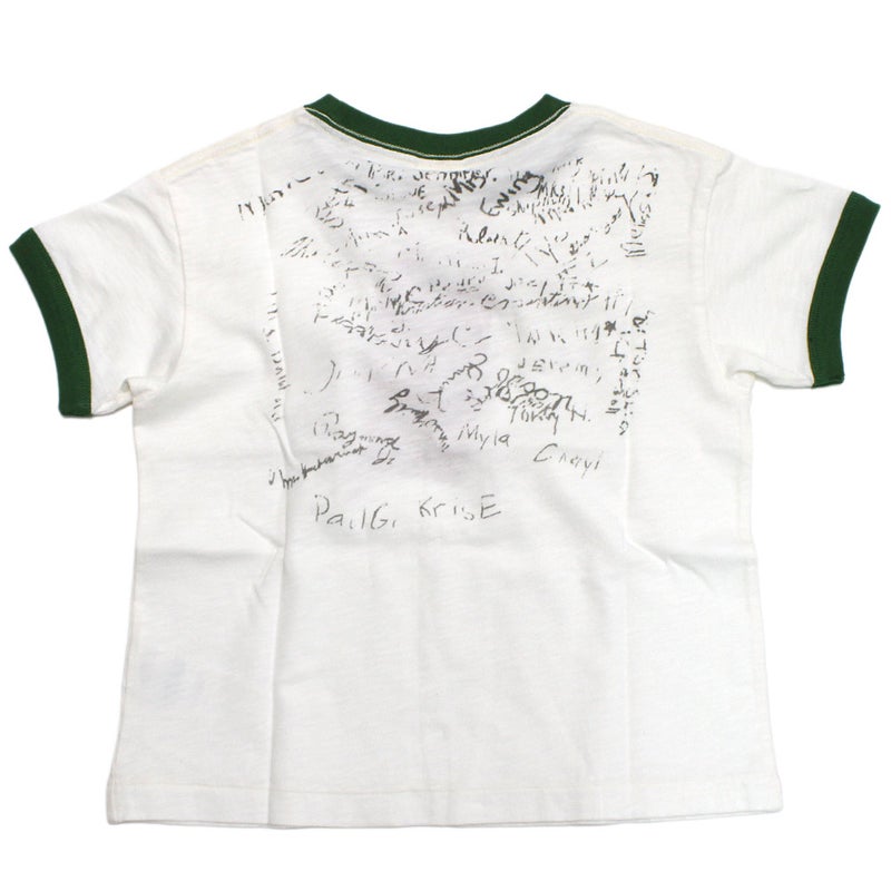 友達と一緒にお絵描きしたようなデザインのリンガーTシャツ。