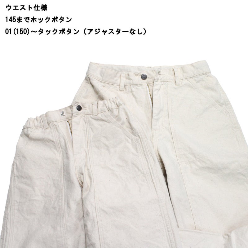 145cmまでウエストホック/01サイズからボタン仕様&アジャスターあり