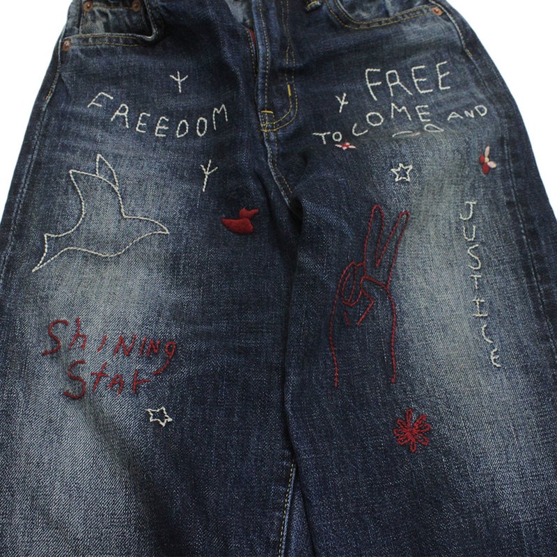 70年代にヒッピーが穿いていたような刺しゅう入りのデニム。