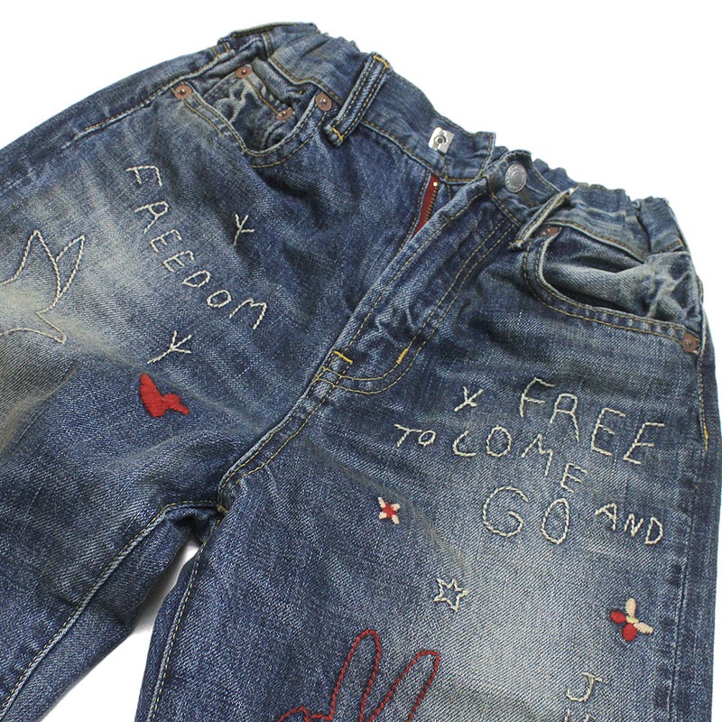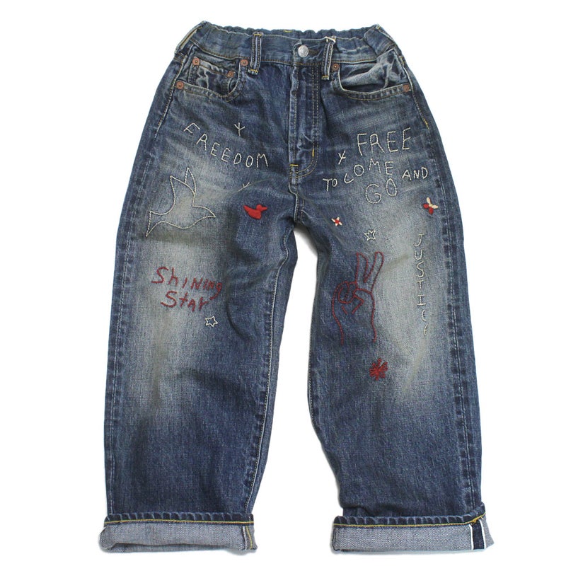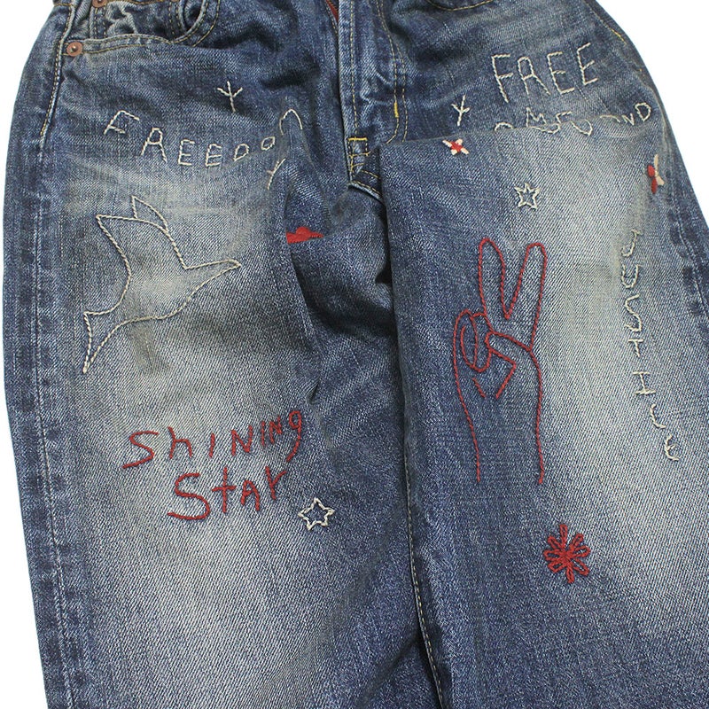 70年代にヒッピーが穿いていたような刺しゅう入りのデニム。