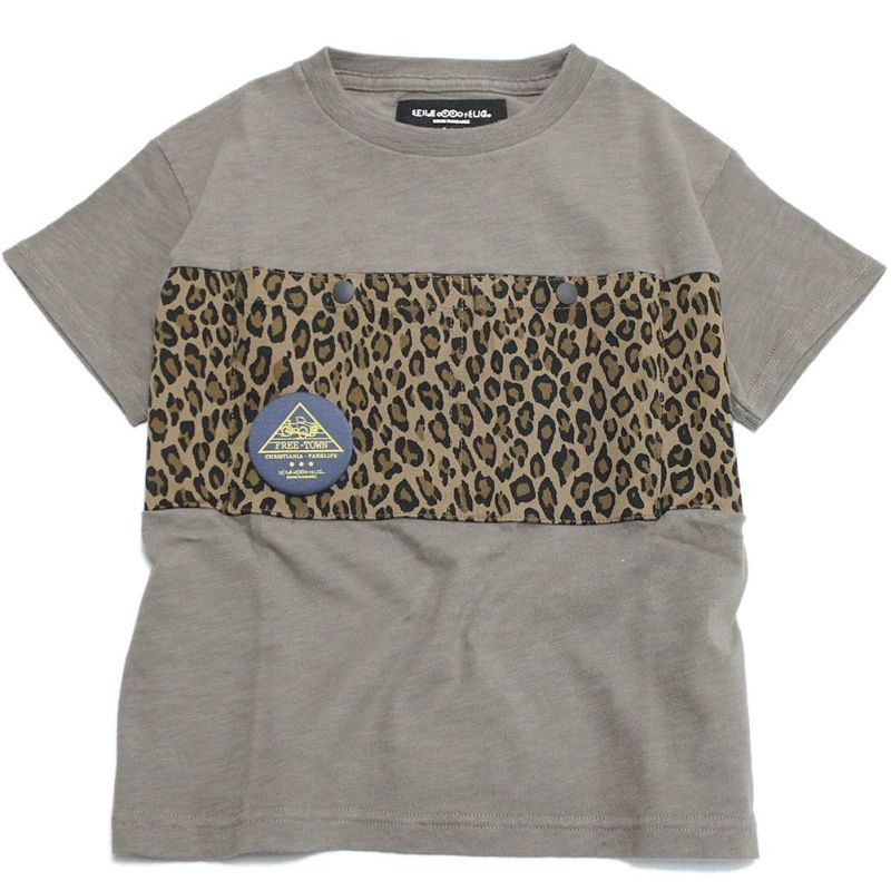 異素材使いの大きな配色ポケットが付いたTシャツ。