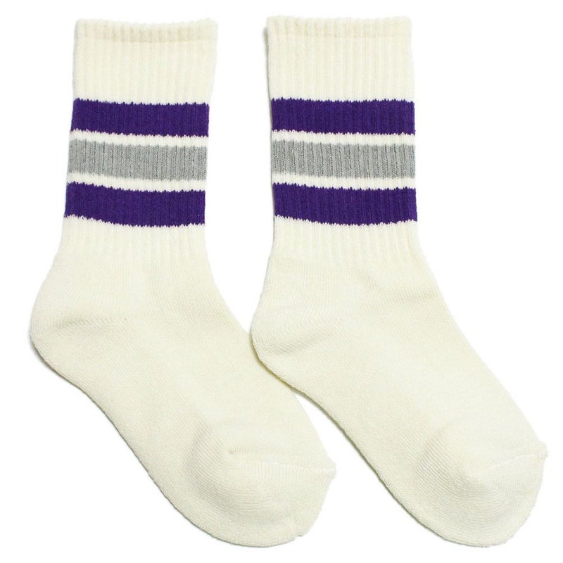 穿き口にデザインされた3本のラインが特徴のクルー丈ソックス。