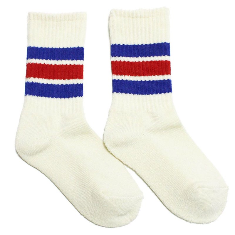 穿き口にデザインされた3本のラインが特徴のクルー丈ソックス。