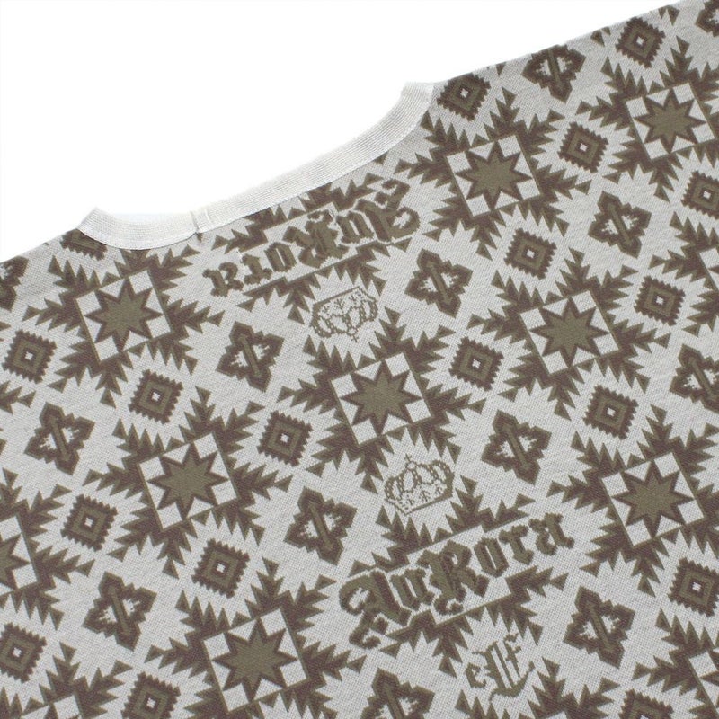 北の王国の民芸(クラフト)のような、八望星エイトスターやダイヤ柄を大胆にデザインした図案を編み上げたオリジナルのコットン天竺のゴムジャガード。