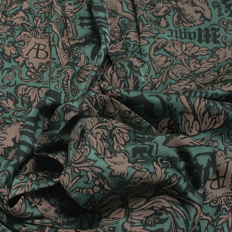 しっとりしたとろみと艶感のあるヴィンテージサテンにプリントしたオリジナルテキスタイル生地。