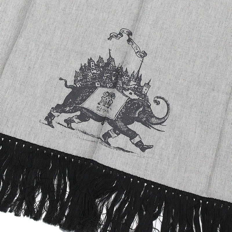 長いフリンジを飾り付けたゴージャスな1枚。
