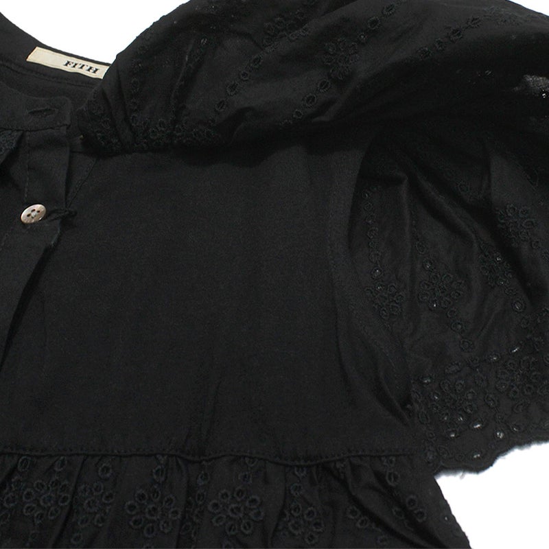 コットン地にアイレット刺繍を施した、スカラップレースが目を惹くブラウス。