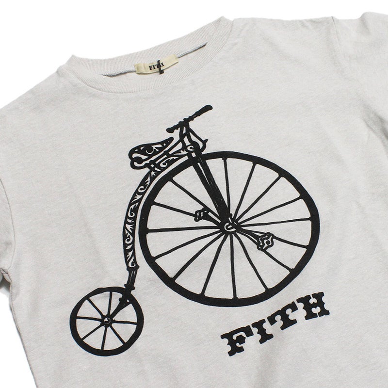 FITHオリジナルで描いてもらったヴィンテージタイプの自転車のフロッキープリントTシャツです。