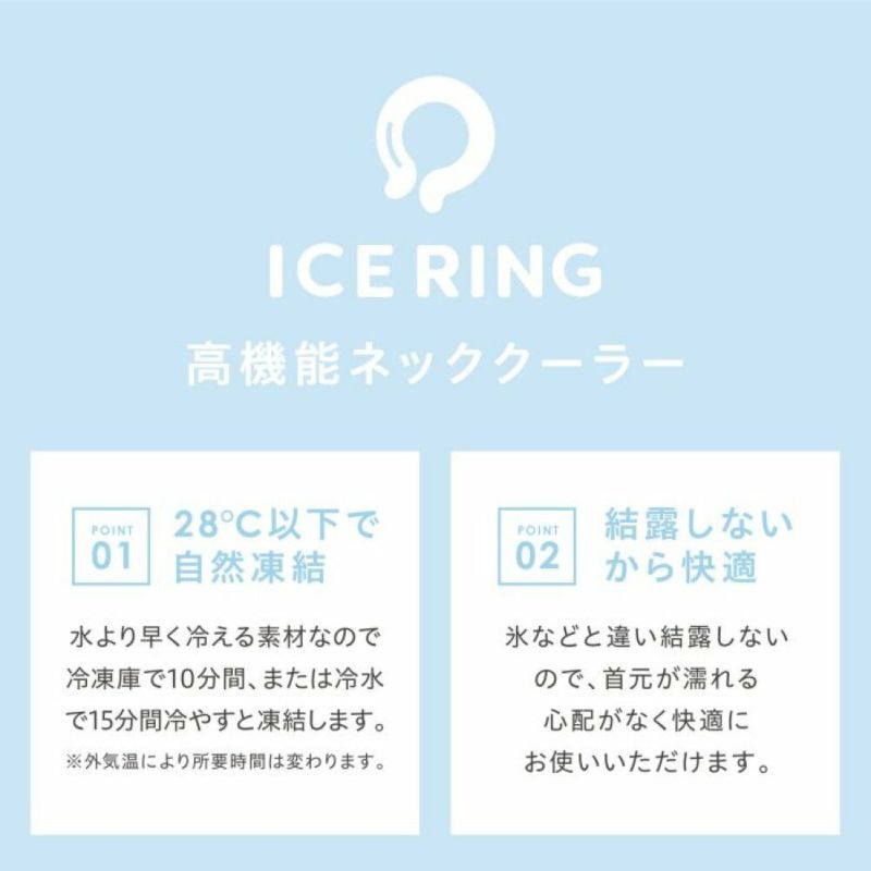 首元を冷やすことで、全身の熱をクールダウンさせてくれるICE RING。直接肌につけることで身体の熱を吸収し、心地よくクールダウン。身体にこもった熱を逃がします。