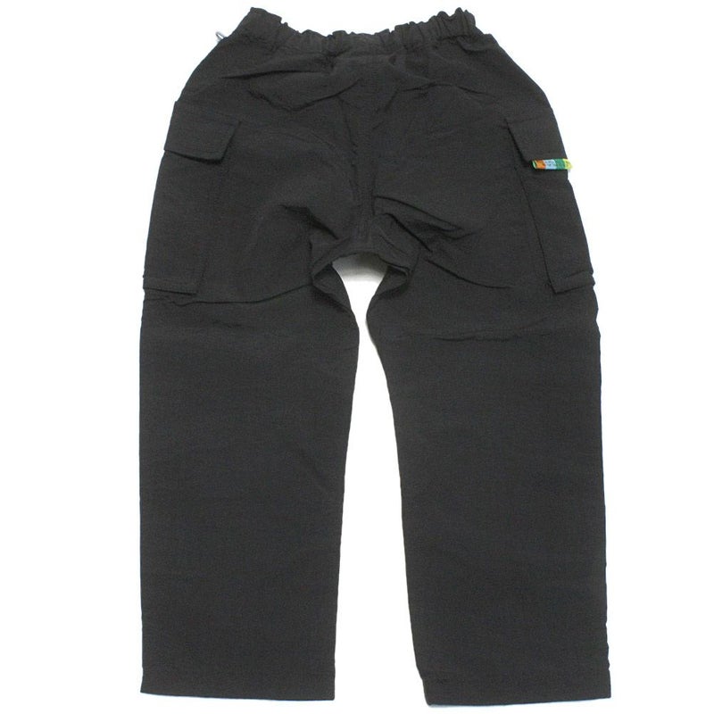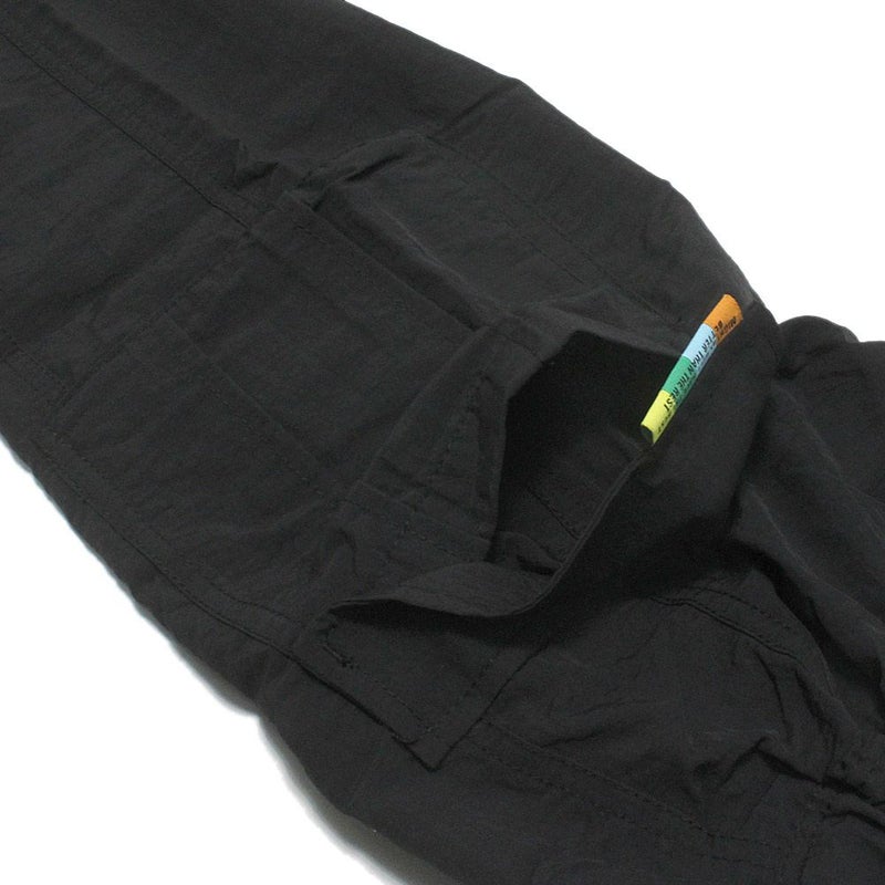 フラップポケット付きで、右ポケットにはカラフルなメッセージ入りのタグが付いています。