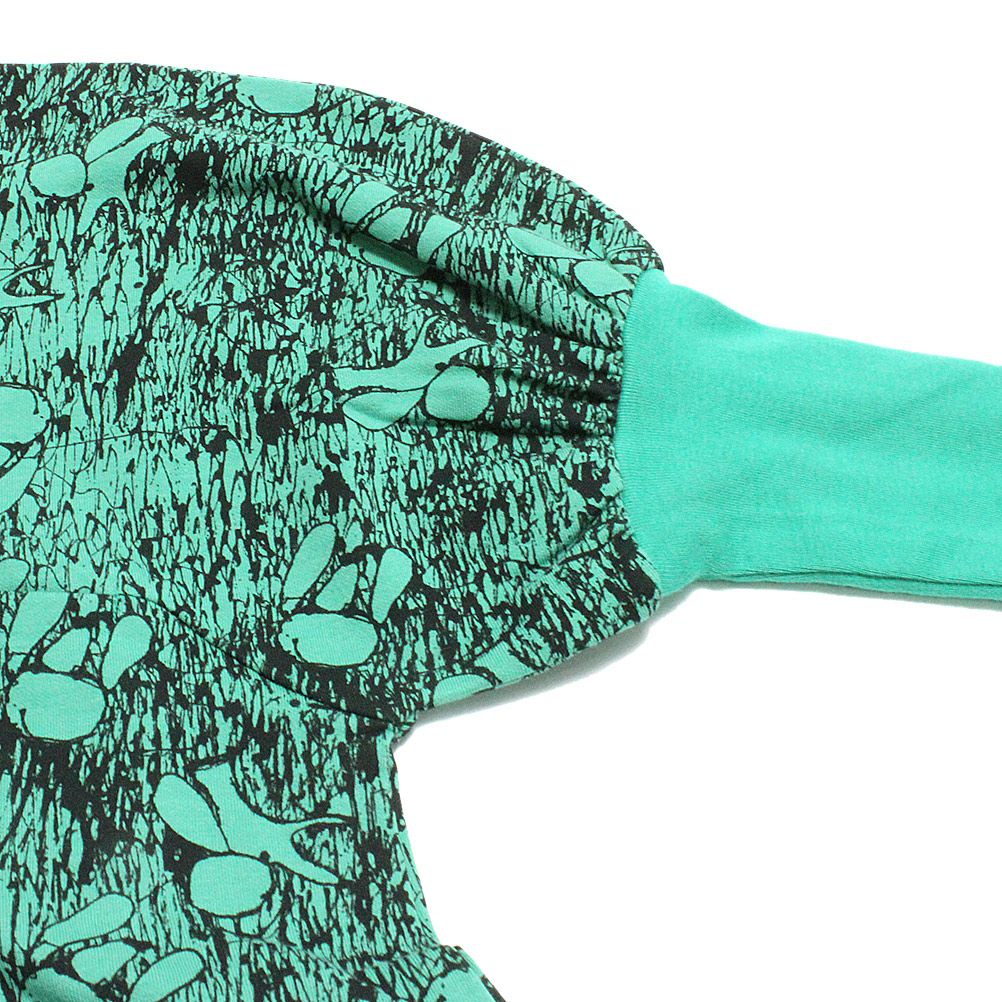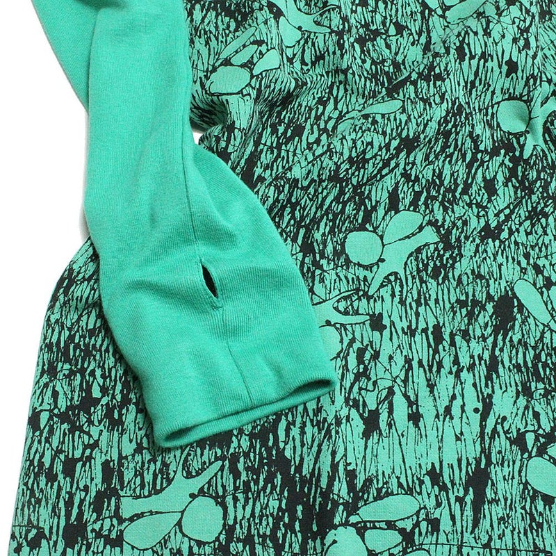 フィット感のある袖は無地デザインでサムホール付き。