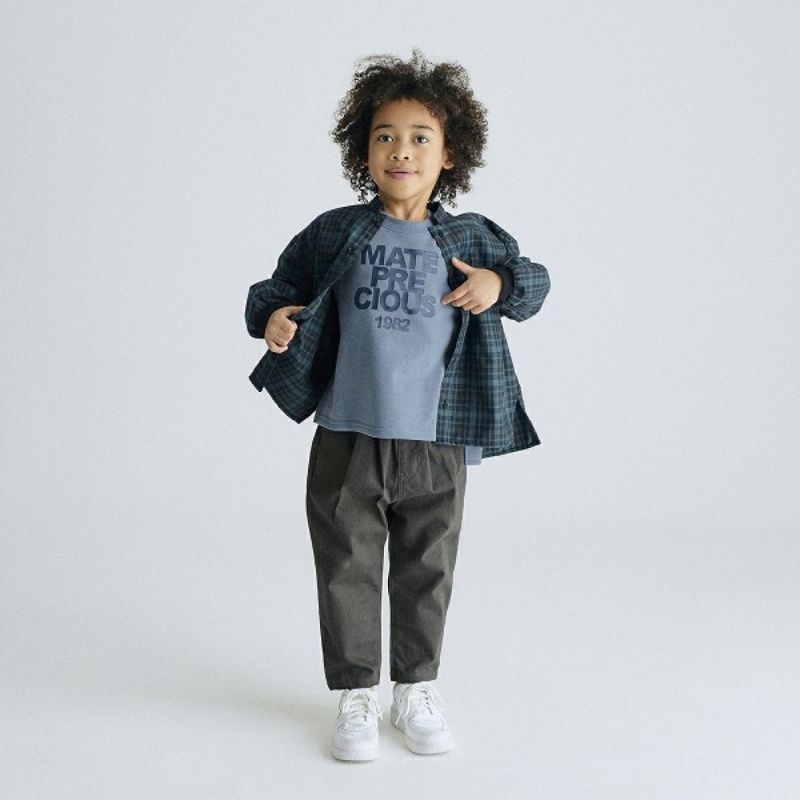 MODEL:114cm / 19kg / グリーンチェック M(110-120)サイズ着用