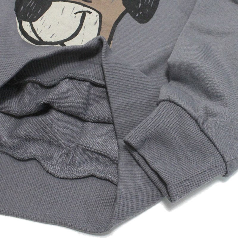 ゆるいタッチのドッグプリントが目を惹くトレーナー。