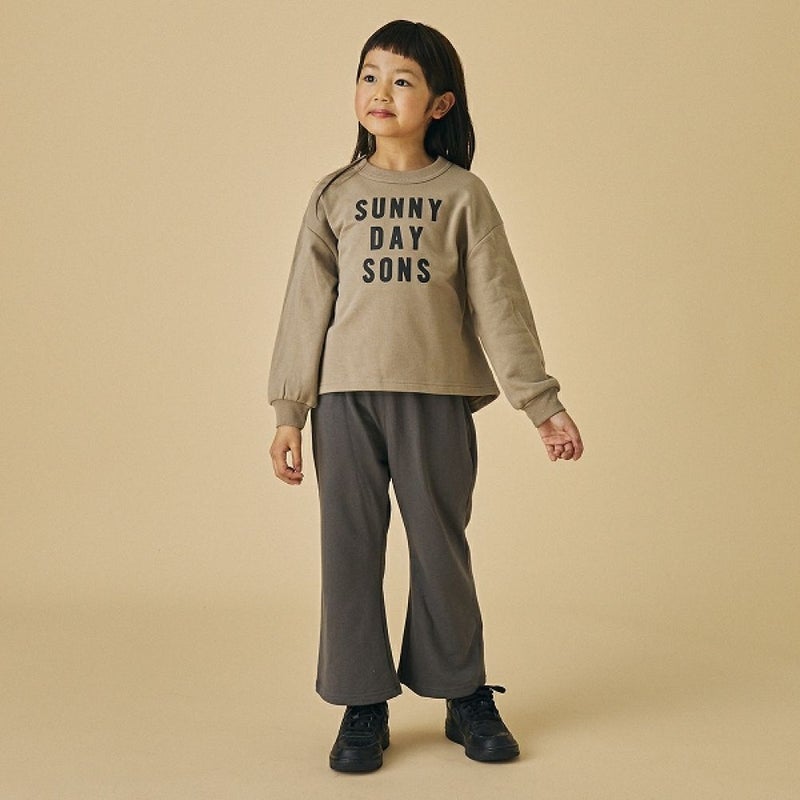 動きやすいスウェット素材のフレアパンツ。