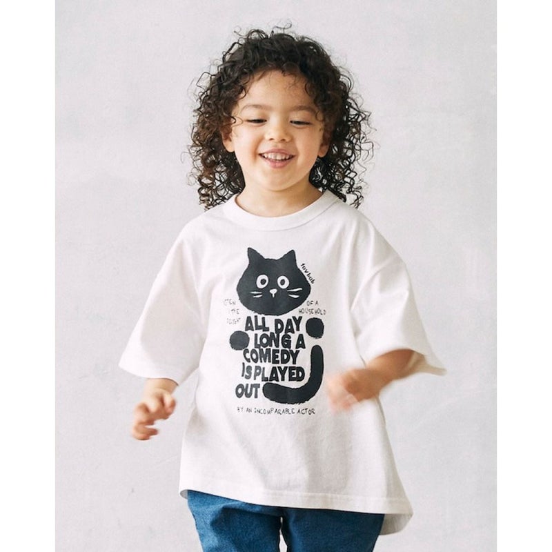 肩落ち感がバランスの良い黒猫プリントTシャツ。