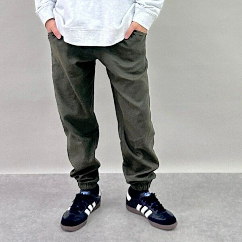 さまざまなスタイリングに重宝する人気のジョガーパンツ。