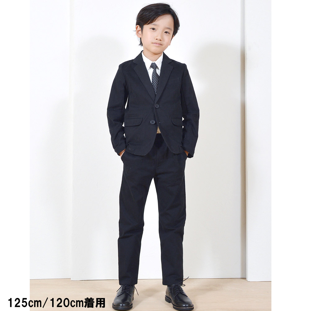 フォーマルな装いにピッタリのブラックテーラードジャケットのセットアップ。