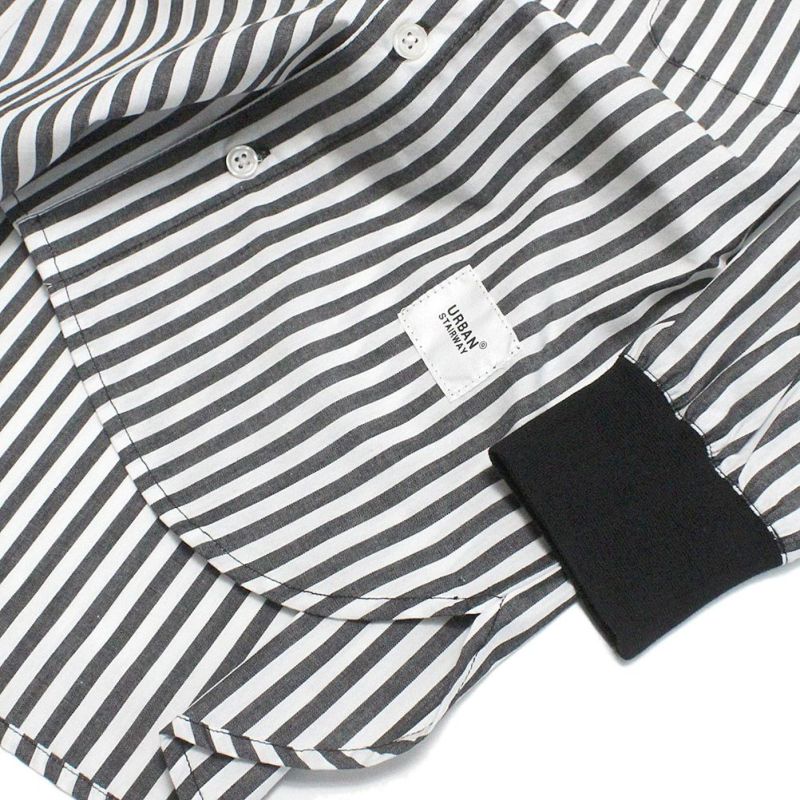 [ジェネレーター] バンドカラーL/Sシャツ ストライプブラック(SK)