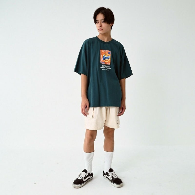 海外の洗剤をモチーフにしたプリントが印象的。