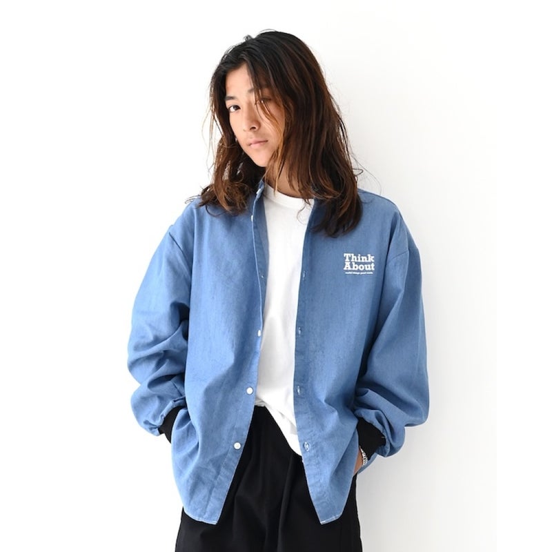 ややストレッチ性のあるデニムを使用した長袖シャツ。