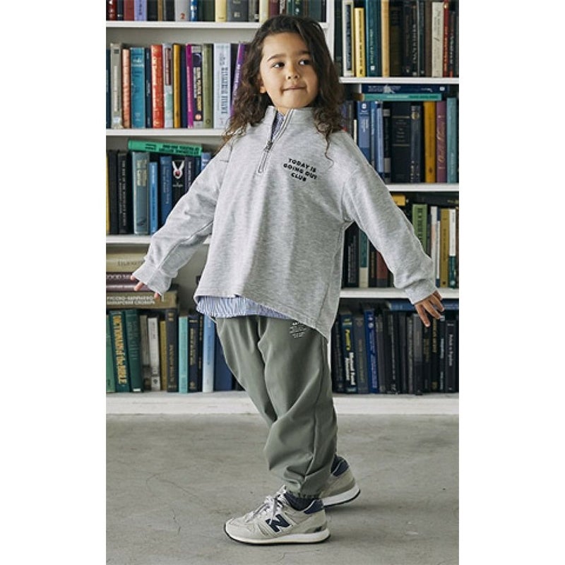 シンプルなデザインのハーフジッププルオーバー。